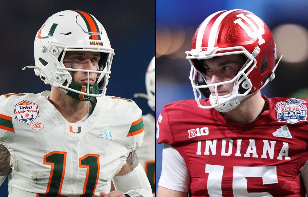 Carson Beck de Miami y Fernando Mendoza de Indiana se enfrentarán en el juego por el título el lunes por la noche. (Getty)