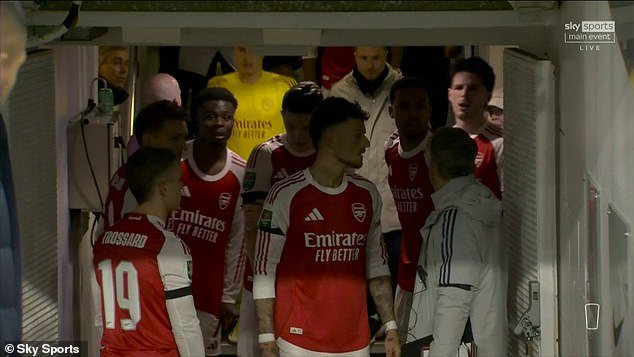 El defensa de los Gunners, Gabriel, intervino, se interpuso entre los dos y le dijo a Stuivenberg: “Para, por favor, para, por favor”. Sin embargo, Rice continuó gritando y gesticulando con enojo, sacudiendo la cabeza y levantando los brazos en el aire.