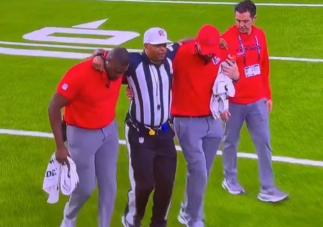 Los entrenadores de los Texans entraron al campo y ayudaron al árbitro a llegar a la banca. Luego se lo llevaron para recibir tratamiento.