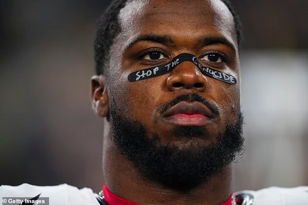 Al-Shaair también fue visto usando zapatos propalestinos en la sesión de entrenamiento de los Texans para 2024.