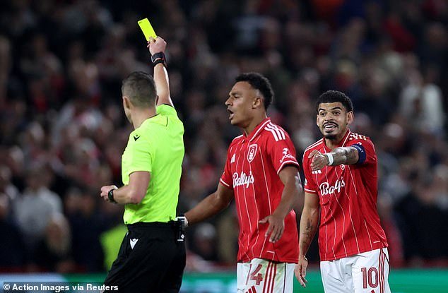Se cree que el bosque está molesto por la forma en que el árbitro Willy Delajod administra el juego. A pesar del estilo físico de Midtjyland, Delajod reservó solo uno de sus jugadores, Kevin Mbabu, pero advirtió a tres del bosque: Morato, Igor Jesús y Morgan Gibbs-White.