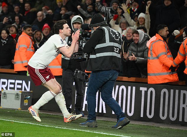 Declan Rice corrió hacia los fanáticos del Arsenal escondidos en la esquina, agarró la cámara de televisión con ambas manos y le dio un puñetazo directamente a la lente.