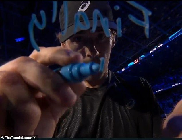 El australiano Alex de Miñaur firma a la cámara tras su victoria sobre Taylor Fritz en las Finales ATP