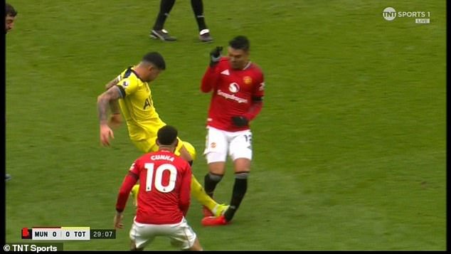 El capitán del Tottenham, Cristian Romero, recibió la tarjeta roja por segunda vez esta temporada tras un ataque imprudente a Casemiro.