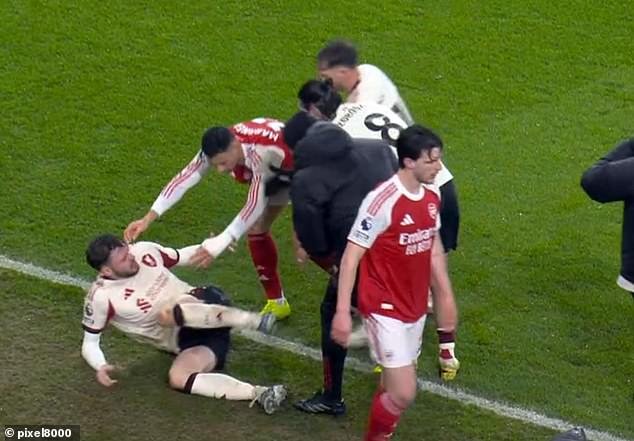 Gabriel Martinelli intentó empujar fuera del terreno de juego al lesionado Conor Bradley el jueves por la noche, pero evitará cualquier acción posterior ya que el árbitro le mostró una tarjeta amarilla al brasileño.