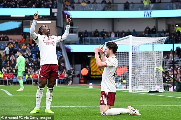 Rice señala al cielo en un conmovedor homenaje a su tía durante la victoria del Arsenal por 2-0 en Burnley.