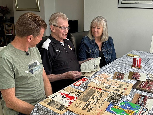 “Papá estaba muy orgulloso de su arreglo de disciplina”, dice Darren. ‘Solo recibió una tarjeta amarilla al final de su carrera cuando fue reservado para un duelo que apenas justificó un tiro libre. Jugué en el juego y me molestó y le pidió al árbitro que cambiara su decisión. ‘