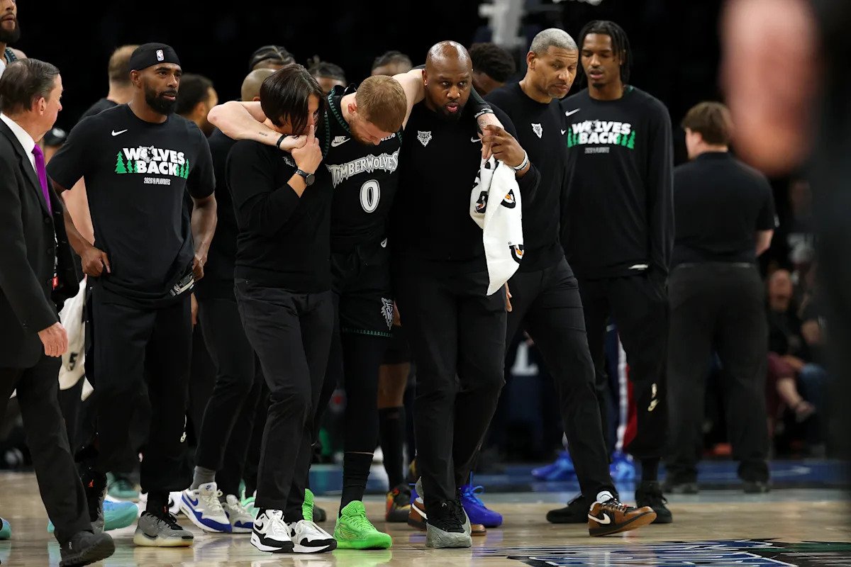 DiVincenzo cayó después de plantar su pierna para tomar el rebote a menos de dos minutos de la victoria del Juego 4 de los Timberwolves sobre los Denver Nuggets. Aunque caminó hasta el vestuario por sus propios medios, fue transportado en silla de ruedas más tarde durante el juego.
