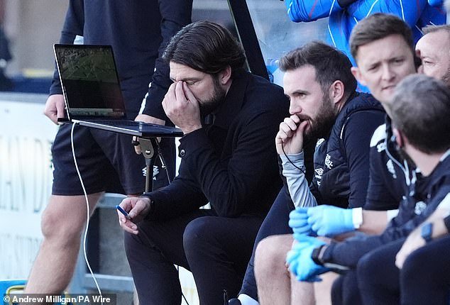 El director deportivo Thelwell observa desde el stand en Livingston cuando los Rangers despertaron una victoria
