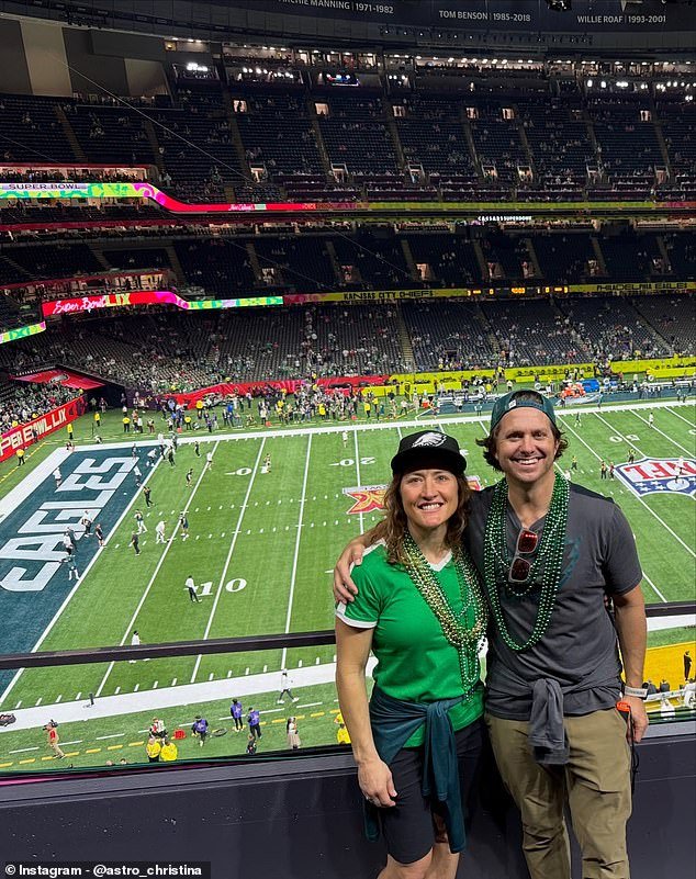 “Ir a la Luna puede haber sido mi Super Bowl, pero realmente me encantó ver el tuyo”, escribió en Instagram junto a una foto de ella y su esposo en el juego. “(También veo los partidos de los Eagles en la Tierra).