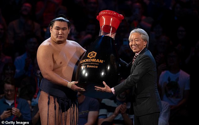 Hoshoryu fue recompensado con una enorme botella de salsa de soja tras su victoria en el Royal Albert Hall.