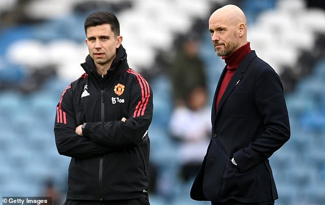 Eric Ramsay (izquierda) aparece junto a Erik ten Hag (derecha) durante su estancia en Man United.