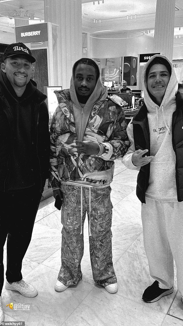 Walsh se encuentra con el rapero con su compañero de equipo de los Broncos y Canguros, Gehamat Shibasaki, y publica una foto en la icónica tienda de moda londinense Burberry.