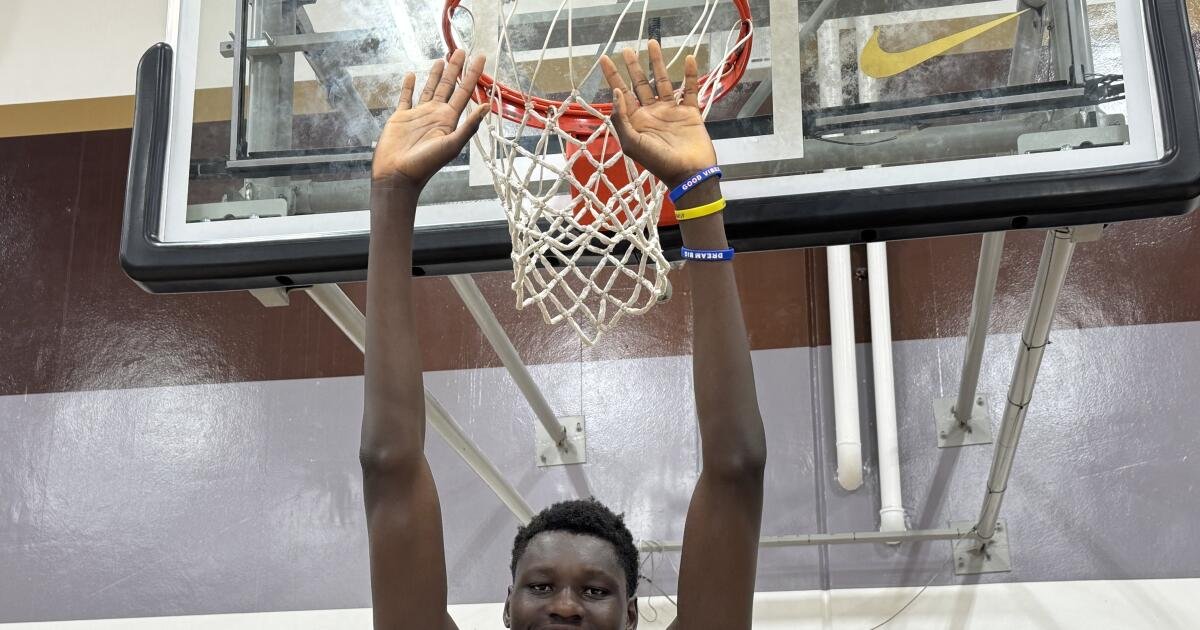 Cherif Millogo usa zapatos talla 17 y mide 2,10 metros. Se coloca debajo de la canasta, levanta los brazos y toca el aro sin levantarse del suelo. El resto de las personas “pequeñas” en el gimnasio de St. Francis High miran con asombro su envergadura de 7-9.