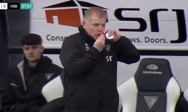 Neil Lennon fue visto poniéndose una bolsa debajo del labio mientras dirigía al Dunfermline en la Copa de Escocia.