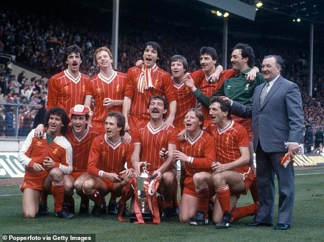 Posteriormente, catorce héroes del Liverpool, entre ellos David Fairclough (fila de atrás, segunda a la izquierda) y Alan Kennedy en la primera fila, extremo derecho, recibieron medallas de campeonato de liga.