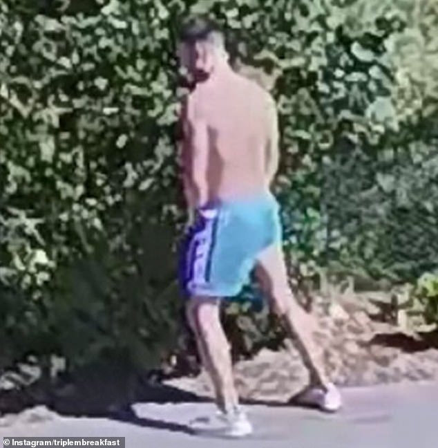 La identidad de los medios australianos Beau Ryan fue captada por la cámara cometiendo un acto grosero afuera de la casa de su jefe de radio (en la foto)