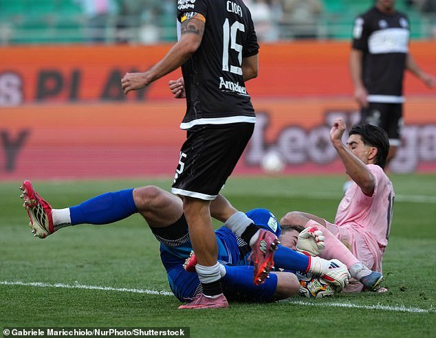 El jugador de 29 años, cuyos antiguos clubes incluían al LA Galaxy y, cuando era juvenil, al Bayern de Múnich, chocó con la estrella del Palermo Filippo Ranocchia durante el choque de liga y fue arrastrado fuera del campo con un collarín.