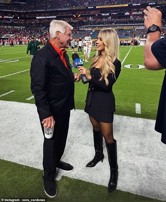Sara Cardona publicó con orgullo una foto de ella entrevistando a Jimmy Johnson al margen