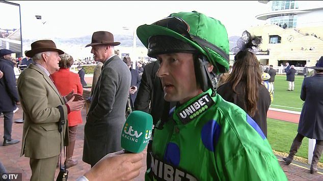 Imágenes de televisión mostraron a De Boinville, quien inició el festival el martes ganando la carrera inaugural en Old Park Star, gritándole a Queally.