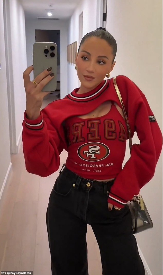 Adams le mostró a los fanáticos en las redes sociales cuando llevaba una combinación de suéter y camiseta sin mangas diseñada por Kristin Juszczyk’s Temporada baja Marca.