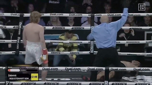 Stewart yacía inmóvil boca arriba mientras el árbitro inmediatamente desestimaba la pelea, que estaba programada para tres asaltos de tres minutos cada uno.