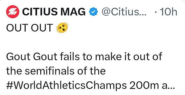 La popular revista American Athletics Citius Mag ha eliminado un tweet Spott-Sprinter-Gicht después de su cuarto lugar en las semifinales de los 200 M en el Campeonato Mundial.