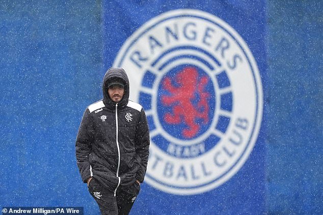 Danny Rohl se esconde bajo una capucha durante una sesión de práctica de los Rangers el miércoles