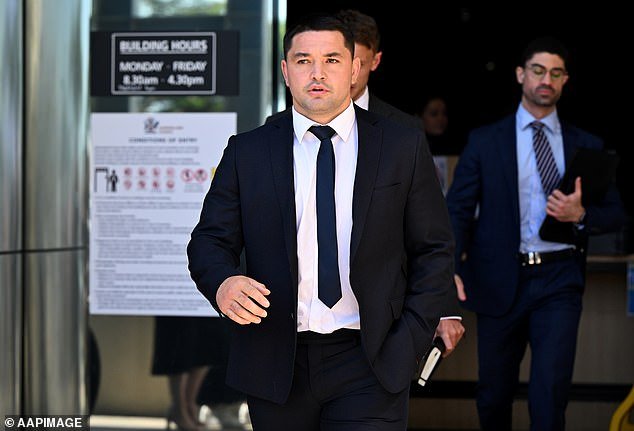 Brandon Smith (en la foto fuera del tribunal de Queensland el 18 de septiembre) está acusado de suministrar ilegalmente cocaína a su ex compañero de equipo de los Sydney Roosters, Victor Radley.