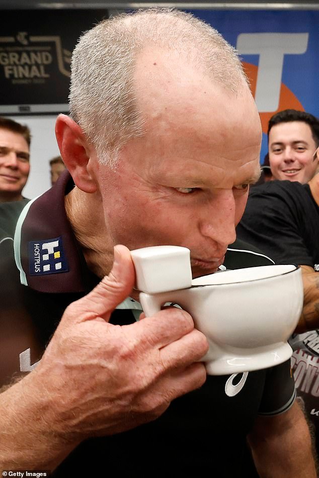 La victoria sabe dulce, especialmente cuando ha tomado la forma de un caparazón de baño de una taza, solo pregúntele al entrenador de Brisbane Broncos, Michael Maguire.
