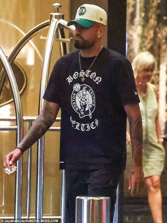 Kyrgios, de 30 años, con una gorra blanca de los Boston Celtics y una camiseta negra, fue visto saliendo de su hotel de Melbourne poco antes de la medianoche del viernes.