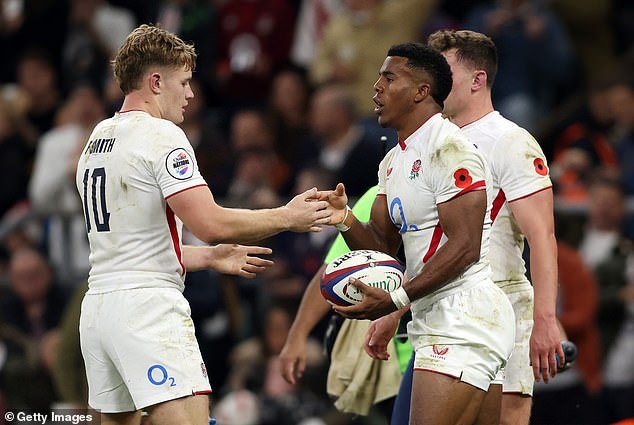 Sustituto: Jamie George 7,5 (por Cowan-Dickie 54), Fin Baxter 5,5 (por Genge 54), Asher Opoku-Fordjour 5,5 (por Heyes 54), Henry Pollock 5,5 (por Pepper 54), Tom Curry 7 (por Cunningham-South 64), Ben Spencer 5 (por Mitchell 63), Henry Arundell 7,5 (por Freeman 67), Maro Itoje 7 (para Chessum 71)