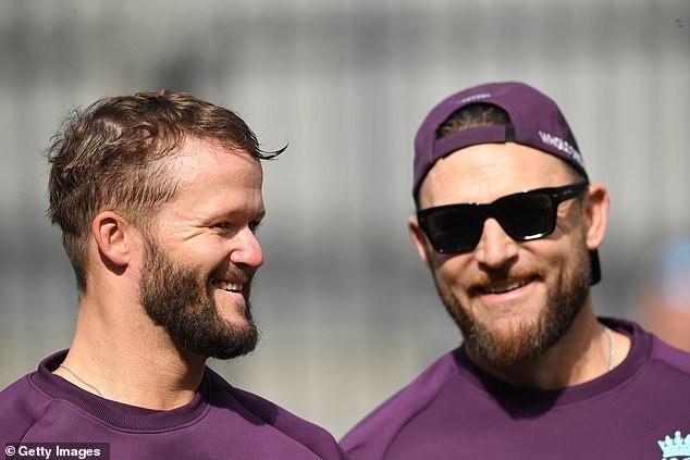 El entrenador de Inglaterra, Brendon McCullum, también fue visto hablando con el australiano Andrew McDonald.