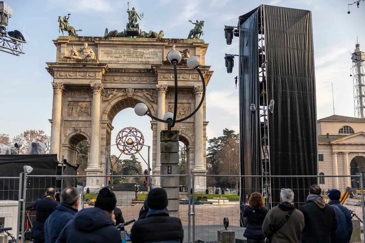Un dispositivo que se cree que es el pebetero olímpico se encuentra en el Arco della Pace en Milán, Italia, el 1 de febrero de 2026. La ceremonia de apertura de los Juegos Olímpicos Milán Cortina 2026 tendrá lugar el 6 de febrero de 2026. (Foto de Maja Hitij/Getty Images)