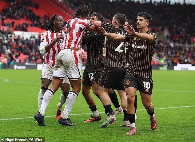 Joe Gelhardt anotó el gol de la victoria en el último minuto para que Hull asegurara una victoria por 2-1 sobre Stoke, que había comenzado el día segundo en la tabla del campeonato.