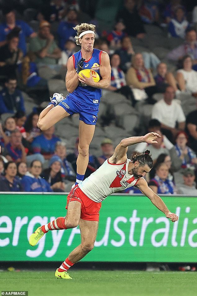 El incidente ocurrió durante la dura derrota de los Bulldogs ante los Sydney Swans en el Marvel Stadium cuando Naughton disparó al aire en un espectacular intento de marcar que tenía todas las características de un contendiente a la Marca del Año.