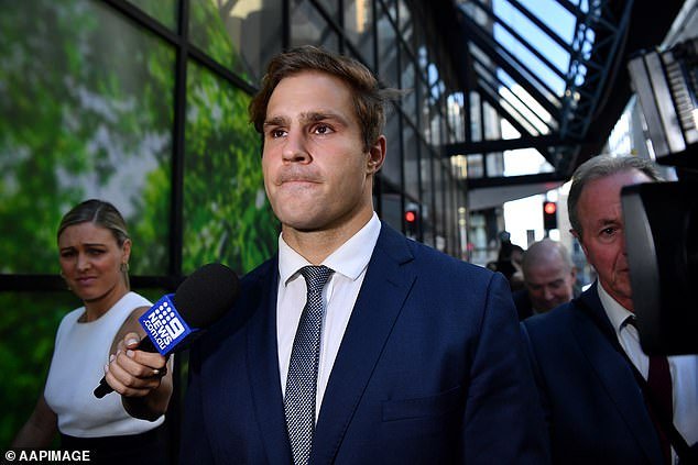 El oficial lo hizo tan culpable cuando demostró ser evidencia del entonces jugador de George Jack de Belin durante el procedimiento de violación de primera clase y compartir Callan Sinclair en 2020.