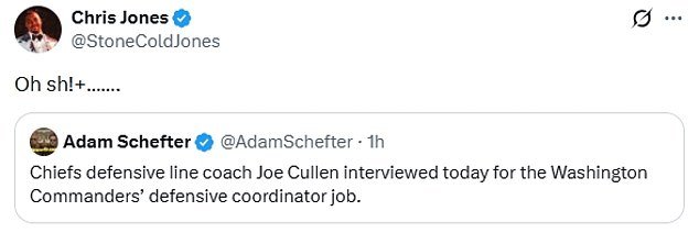 La estrella de los Kansas City Chiefs, Chris Jones, no parecía impresionado de que Joe Cullen pudiera irse