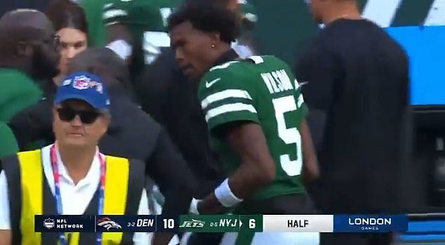 Perdiendo 10-6, los Jets culminaron su último avance de la primera mitad con un despeje falso para retener el balón, pero luego extrañamente se movieron sin urgencia para llegar a la línea de golpeo y hacer otra jugada.