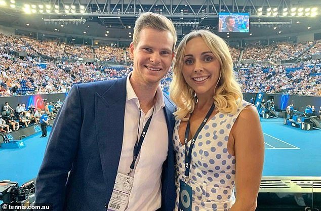 Steve Smith, fotografiado con su esposa Dani Willis, es un gran admirador del tenis y el cricket y asistió al Abierto de Australia.