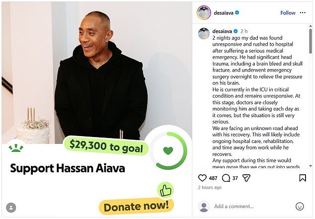 Aiava también usó Instagram y compartió una foto de su padre en el hospital mientras recibe tratamiento.
