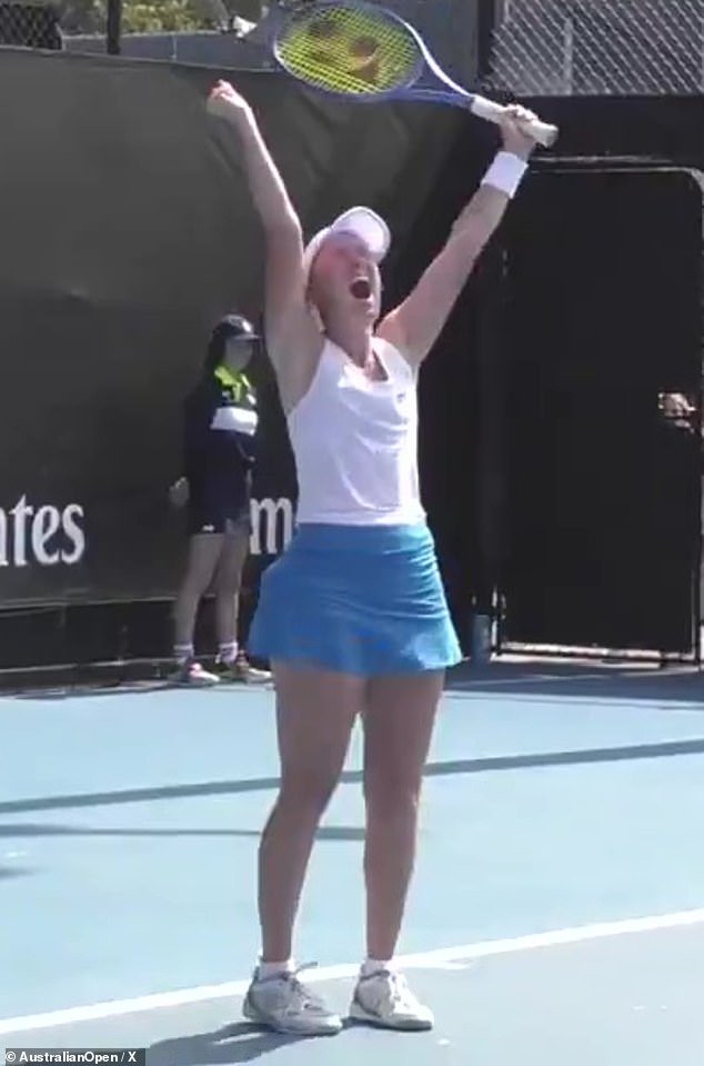 Una emotiva Storm Hunter reacciona al margen después de asegurar su lugar en el cuadro principal del Abierto de Australia.
