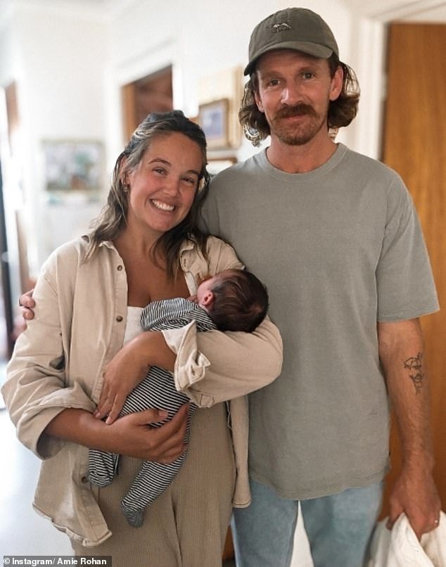 La ex futbolista WAG Amie Rohan ha revelado que está embarazada nuevamente (Rohan aparece en la foto con su nueva pareja Jaison Todd luego del nacimiento de su hijo Archibald Alexander en 2024).