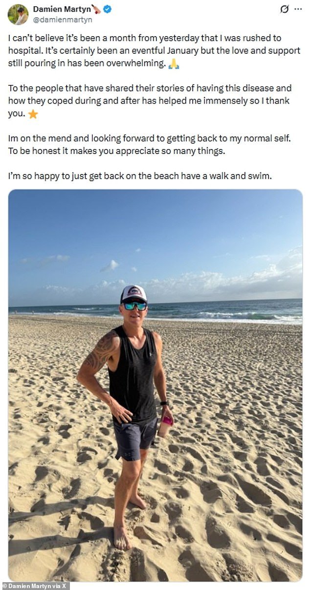 Desde entonces, ha dado una actualización extremadamente positiva sobre su salud, publicando una foto de sí mismo caminando por la playa y revelando que también ha estado nadando.