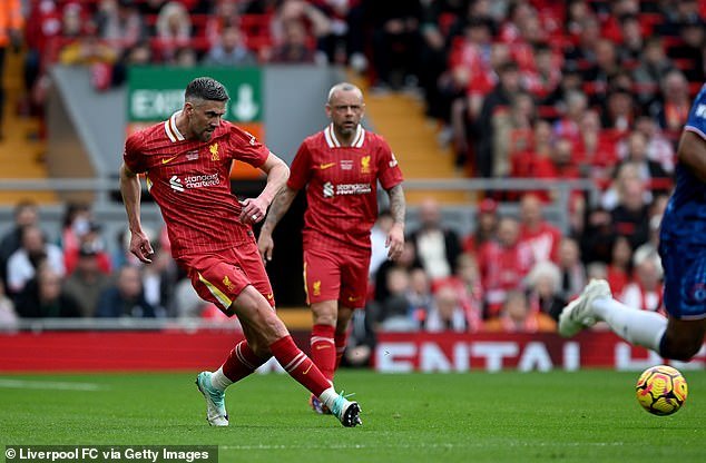 La maravilla inglesa de un partido internacional, de 35 años, juega para el Liverpool en el juego de leyendas apenas UN DÍA después de retirarse.