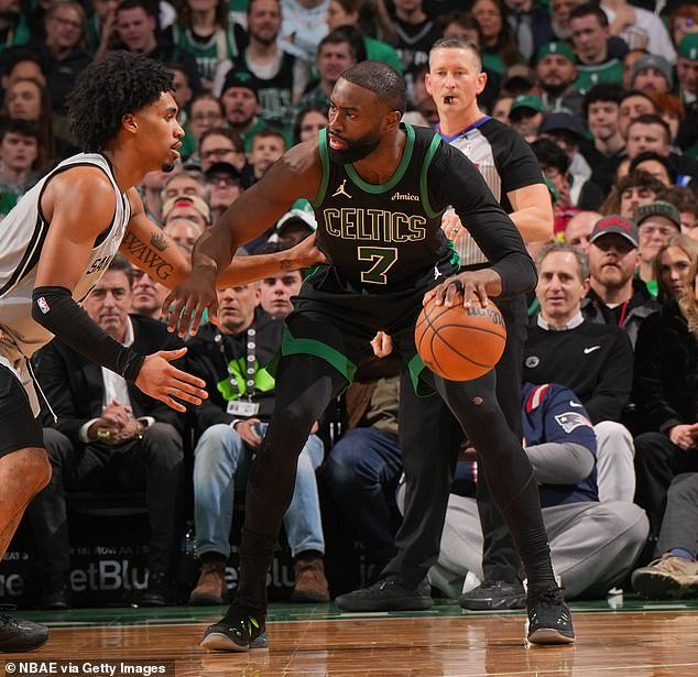 Jaylen Brown da marcha atrás al novato de los Spurs, Dylan Harper, frente al funcionario de la NBA Nick Buchert