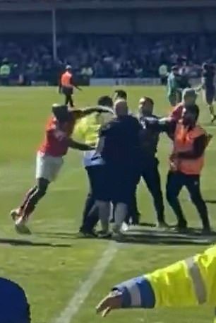 El mediocampista de la ciudad de York, Hiram Boateng, fue visto atacando a un fanático de Rochdale después de ser empujado al suelo.