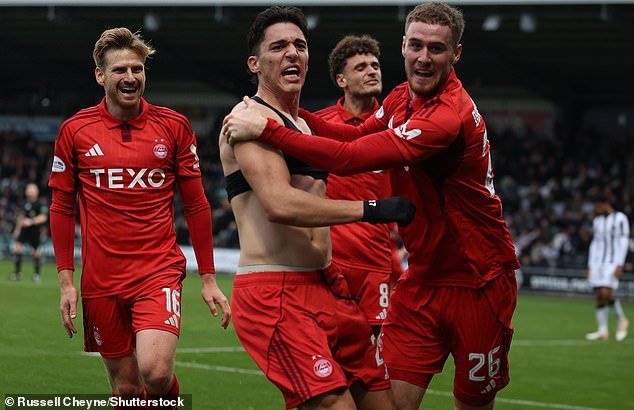 El delantero del Aberdeen, Marko Lazetic, celebra su gol de la victoria en el tiempo añadido ante el St Mirren