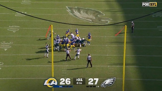La unidad de equipos especiales de los Philadelphia Eagles volvió a bloquear un posible ganador del juego de Joshua Karty para los Rams de Los Ángeles para completar el regreso y mejorar a 3-0.