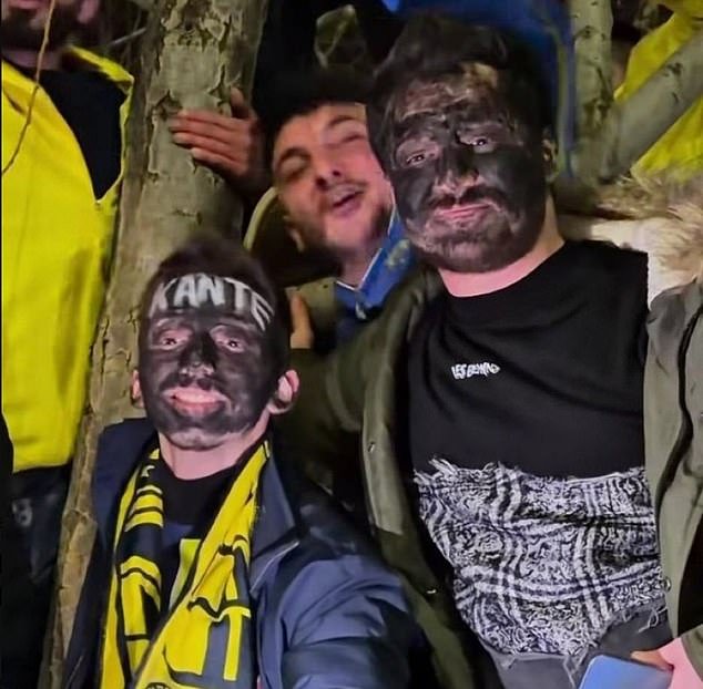 Dos aficionados del Fenerbahçe aparecieron con la cara negra mientras daban la bienvenida al nuevo fichaje N’Golo Kante.